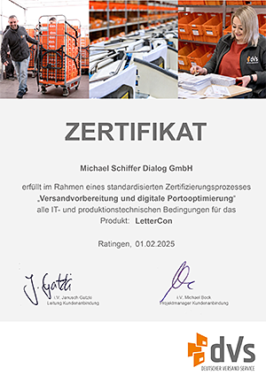 Durch unsere Direktanbindung an den alternativen Postdienstleister dvs können wir, als zertifizierter Einlieferer der dvs-Produkte, sehr kurzfristig nach Erhalt Ihrer Adressen eine mögliche Abdeckquote ermitteln und Ihnen die mögliche Portoersparnis aufzeigen.